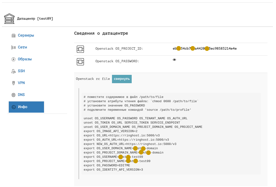 В файл останется только добавить пароль для подключения к датацентру OS_PASSWORD. Нажмите
