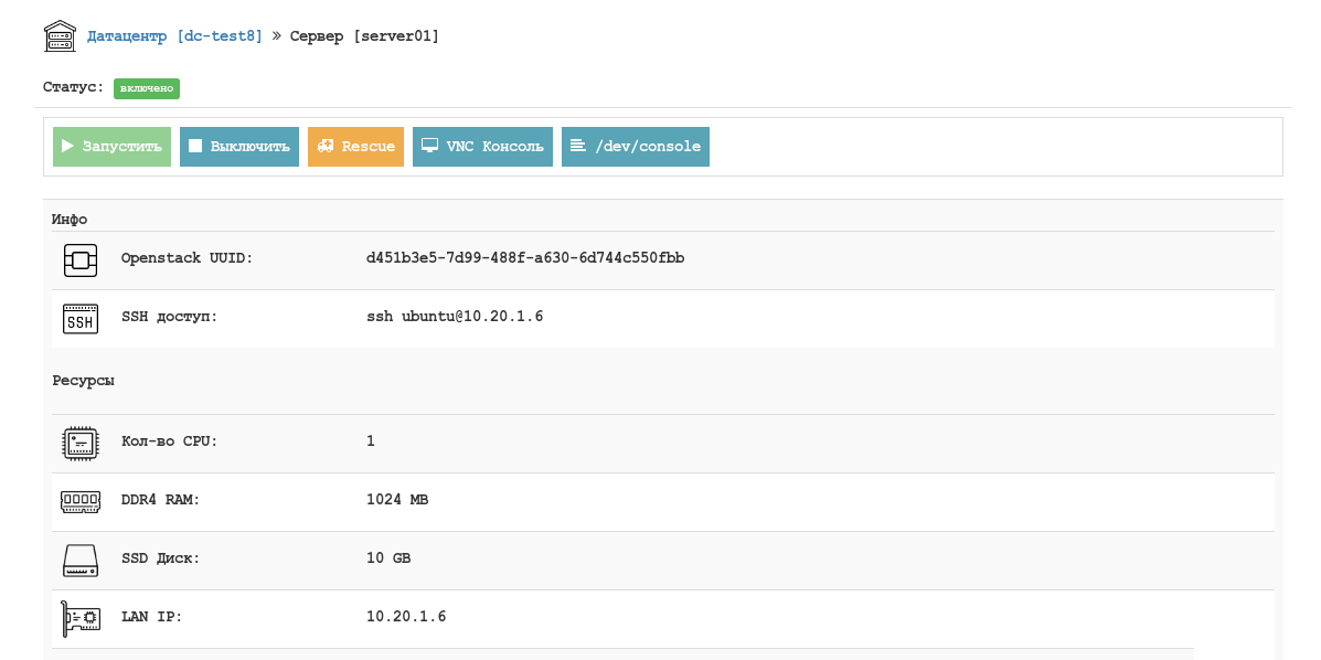 Авторизацию на виртуальных серверах осуществляется по SSH ключу.
